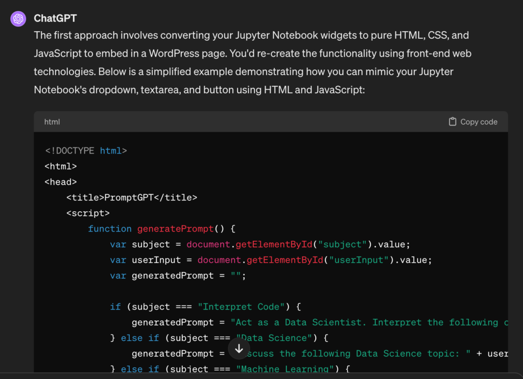 Da mesi sono abbonato a chatGPT e sto esplorando tutti i modi per integrarlo nella mia routine di data scientist e sviluppatore web nel tempo libero.