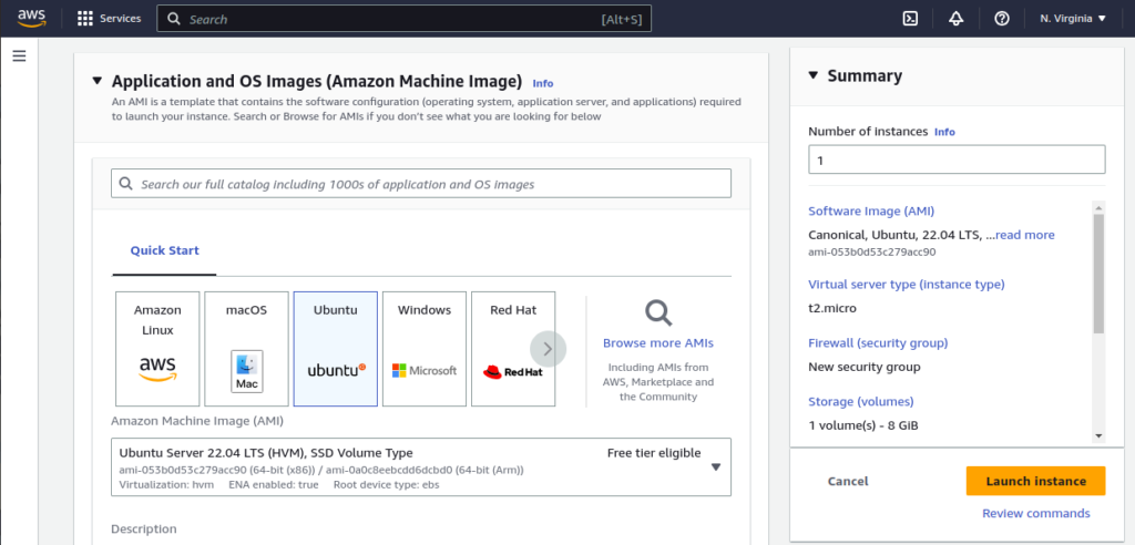 Let’s start by going into the EC2 section of the using an Ubuntu 22.04 image